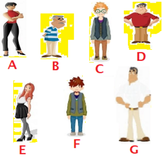 Ich heiße Franz. Ich bin 50 Jahre alt. Ich bin groß und kräftig (7). Meine Augen sind schwarz. Ich habe keinen Bart oder Schnurrbart. Ich trage ein weißes Hemd und eine beige Hose.
